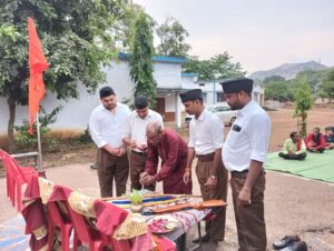 सक्ती – राष्ट्रीय स्वयंसेवक संघ मसनिया मंडल द्वारा रविवार को विजयदशमी उत्सव का आयोजन अत्यंत हर्षोल्लास के साथ मनाया गया। कार्यक्रम की शुरुआत ध्वजारोहण एवं प्रार्थना से की गई तत्पश्चात शास्त्रों की पूजा की गई।