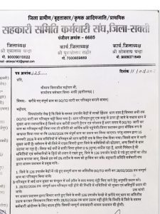 सहकारी समिति कर्मचारी संघ, जिला-सक्ती के द्वारा खरीदे गए संपूर्ण धान का DO/TO जारी कर परिवहन कराने के लिए जिला कलेक्टर को दिया ज्ञापन