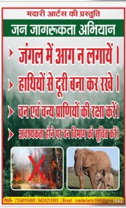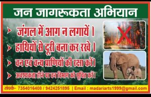 सर्व विदित हो की छत्तीसगढ़ प्रदेश के चार वन वृत्त के लगभग 20 से ज्यादा वन मंडलों में हाथी मानव द्वंद लंबे समय से चलता आ रहा है।इसी तरह वनों की कटाई और वनों में आग लगाने का कार्य भी हो रहा है , इसे रोकने का एकमात्र उपाय जन जागरूकता ही है।